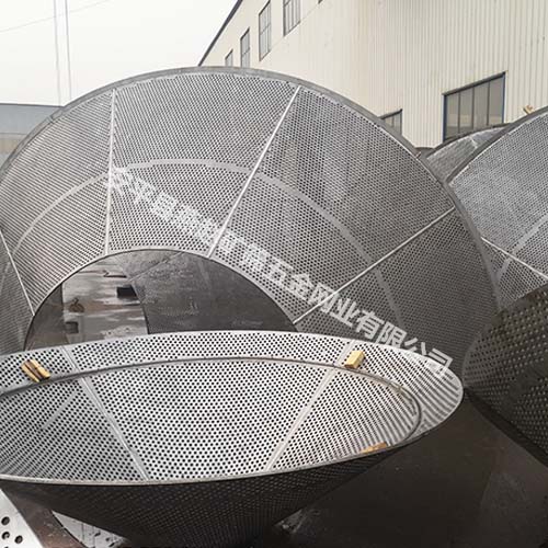 双氧水锥形支撑格栅,包括锥形骨架以及V型丝网,接触面积大,能充分使氧化铝参与反应;且丝网采用V型形丝网,相对比普通丝网结构不易于堵塞,耗用材料少,能使工作液体均匀分布,气体顺畅通过,具有很好的实用价值。
